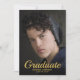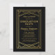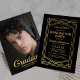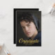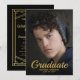 Convites de festa de graduação do grande gatsby com uma foto de sangramento total do graduado na frente. No verso é um fundo preto clássico com uma borda vintage em folha de ouro glamoroso e um modelo de festa de graduação tipográfico elegante.