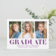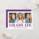 Convide os convidados para a sua festa com nossos convites de festa de graduação coral Simplesmente Ousado! Os convites de festa de graduação modernos exibem três das suas fotos favoritas com "Graduado" abaixo em uma fonte moderna roxa e o nome do graduado, nome da escola e ano de graduação. O verso exibe os detalhes da sua festa de graduação abaixo da frase "vamos celebrar" com um fundo roxo sólido.
