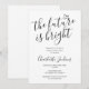 Este convite de festa de graduação preto e branco "o futuro é brilhante" pode ser personalizado com os detalhes da sua celebração. Criado por Thisisnotme©