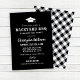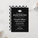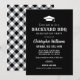 Celebre seu graduado com este convite de festa de graduação preto com um título ousado de “Churrasco no Quintal”, ícone de chapéu de graduação e tipografia rústica limpa. Perfeito para um churrasco casual, casa aberta ou celebração de verão no quintal. O verso apresenta um padrão xadrez preto e branco coordenado para um clima clássico de picnic. Personalize com o nome do graduado e detalhes da festa.