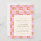Celebre com estilo com este vibrante convite de festa de formatura inspirado no retro. Com um ousado padrão floral rosa e laranja que lembra os desenhos de azulejos vintage, este convite atraente é perfeito para quem ama uma estética divertida e sofisticada. A área central do texto é emoldurada com tons quentes, fazendo com que o nome do formando e os detalhes da festa se destaquem lindamente. Uma escolha divertida e única para uma celebração alegre!