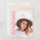 Celebre seu graduado com este convite de festa de graduação com tipografia retrô moderna! Inclua 4 fotos do seu graduado e os detalhes da festa de graduação. As tonalidades de creme, laranja e rosa certamente farão uma declaração ousada de orgulho e alegria pelo feito do seu graduado.