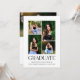 Anuncie seu marco com este convite de festa de graduação moderno com múltiplas fotos, apresentando espaço para quatro retratos de formandos ao lado de uma tipografia "Graduado" em negrito. O design limpo em preto e branco permite que suas fotos sejam o centro das atenções, mantendo o layout elegante e comemorativo. Campos de texto totalmente personalizáveis tornam fácil compartilhar todos os detalhes da sua festa.