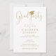 Este convite de festa de graduação em script dourado elegante pode ser personalizado com os detalhes da sua celebração e foto no verso. Projetado por Thisisnotme©