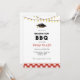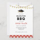 Convite de festa de graduação divertida e rústica com ilustração de aquarela de um chapéu de graduação e luzes de corda com xadrez gingham vermelho e branco na parte inferior.