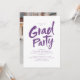 Convite de formatura com design moderno de pinceladas em roxo e branco, com foto ao fundo, simples e único. Personalize com suas próprias fotos e informações da festa de graduação.