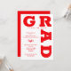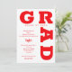 GRAD em letras vermelhas negrito curva em torno das bordas destes convites de festa de graduação brancos. VEJA TODA A COLEÇÃO de combinações de cores prontas, pratos de papel, guardanapos, caixas de lembrancinhas e convites de festa de graduação em nossa loja.