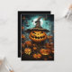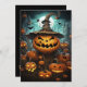 Convite para Festas de Halloween. Noite de Halloween escura e assustadora com abóboras pretas e aranhas-viúvas pretas. O Castelo de Drácula está ao fundo. Mude o texto para ler o que precisar. Use como Convite de aniversário de Halloween, apenas mude o texto. Conteúdo genérico