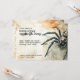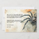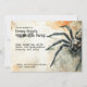 Este convite de festa de Halloween apresenta um design ousado e assustador, perfeito para aqueles que desejam criar um tom sombrio para o seu evento. No lado direito do convite, uma grande tarântula peluda é retratada em detalhes realistas. A imagem em close da aranha, com suas pernas grossas e corpo texturizado, chama imediatamente a atenção e adiciona um senso de suspense assustador. A tarântula cria uma atmosfera de intriga, deixando claro que essa festa de Halloween será cheia de emoções.
