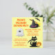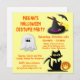 Convite de festas De Figurino De Halloween De Crianças Bonitas. Personalize-o com suas informações e exclua ou altere o texto, quando necessário. Spooky, mas não assustador para crianças. Mostra um fantasma bonitinho com olhos engraçados, chapéu de bruxa e vassoura, um gato preto, e uma abóbora sorrindo esculpida. Toda a redação está numa laranja com o tema do Halloween. Apenas personalize suas informações nos espaços fornecidos. As crianças vão adorar postar isso na geladeira ou conselho de boletins, antecipando-se!Envelope branco padrão incluído para sua maior comodidade. Descontos para compra em massa - consulte cotações de preços de quantidades de seleção.