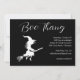 Uma bruxa voadora sobre uma vassoura contra um céu negro à noite, e a moda dizendo que Boo Thang sotaque este Convite do Partido Adulto do Halloween.