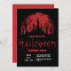 Apresentando uma lua vermelha e uma floresta sombria, este convite dá o tom perfeito para uma noite de Halloween inesquecível. (Trabalho de arte Gerado por AI)