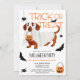 Este convite para a festa do Dia das Bruxas de "Trick or Treat" é a forma perfeita de arrancar a sua celebração assustadora! Apresentando um adorável dachshund vestido como um fantasma, este convite certamente trará um sorriso aos rostos dos seus convidados. A design lúdica inclui uma ilustração encantadora do filhote segurando um cesto de abóbora na boca, cercado por morcegos, aranhas e teias que se somam à atmosfera festiva do Halloween. O esquema de cor laranja e preto vibrante pop contra o fundo branco limpo, fazer os detalhes do evento com facilidade de leitura. Quer você esteja hospedando uma festa para crianças, adultos, ou ambos, este convite dá o tom para uma noite divertida e assustadora. Totalmente personalizável para ajustado dos detalhes do seu partido!