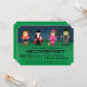 Se o aniversário do seu filho cai no mês de Halloween ou você só quer ter uma festa de Halloween vestida para crianças, este belo e colorido convite de festas de Halloween é perfeito para eles! A ilustração tem meninos e meninas vestidos em vários adoráveis monstros e roupas de fantasia que incluem roupas de diabo com cauda pontiaguda, chifres e garfo. A roupa inteligente do vampiro completa com capa e colete. O pequeno vestido de bruxa rosa e colete com vassoura e chapéu pontiagudo. E a máscara do monstro verde de Frankenstein e um grande terno confortável. Fundo detalhado de gatos, morcegos, árvores e tombstones com estrelas no céu. Um convite que vai impressionar os convidados!