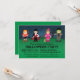 Se o aniversário do seu filho cai no mês de Halloween ou você só quer ter uma festa de Halloween vestida para crianças, este belo e colorido convite de festas de Halloween é perfeito para eles! A ilustração tem meninos e meninas vestidos em vários adoráveis monstros e roupas de fantasia que incluem roupas de diabo com cauda pontiaguda, chifres e garfo. A roupa inteligente do vampiro completa com capa e colete. O pequeno vestido de bruxa rosa e colete com vassoura e chapéu pontiagudo. E a máscara do monstro verde de Frankenstein e um grande terno confortável. Fundo detalhado de gatos, morcegos, árvores e tombstones com estrelas no céu. Um convite que vai impressionar os convidados!