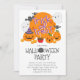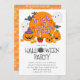 Este convite festivo apresenta um jack-o-lanterno, fantasma, morcegos e milho doce Halloween. As palavras "Trick or Treat" são escritas de forma divertida e festiva. É a maneira perfeita de convidar os amigos de seus filhos para uma festa de Halloween assustadora onde eles podem vir vestidos com seus fantasias e fazer truques para doces.