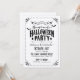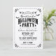 Convite de festas de design de fantasia de Halloween moderna e vintage com tipografia rústica e uma bela borda pontilhada com detalhes de canto de rolagem vintage. Bates e gráficos de crânio em branco completam o design. Adicione os detalhes da sua festa para criar um convite personalizado de tipo. Clique no botão PERSONALIZAR TI para personalizar fontes, mover texto e criar seu próprio design exclusivo.