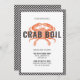 Convite de festa de cozido de caranguejo com um padrão xadrez que lhe dá um ambiente aconchegante.