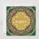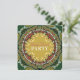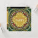 Tema da Festa de Jantar: Arte geométrica brilhante e bonita com mandala de renda fractal com joias nas cores verde, dourado, vermelho cereja e amarelo quente. Cartão de convite personalizado de dupla face. Escreva todas as informações do seu evento no verso ~ onde o design também é encontrado em um layout complementar. - Feito com ❤ por Webgrrl.art