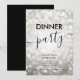 Modelo de convite para festa de jantar com luzes glitter prateadas elegantes e glamurosas, apresentando luzes prateadas cintilantes e tipografia moderna.