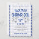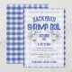 Convite informal para jantar de frutos do mar com tema Shrimp Boil, apresentando um charmoso fundo xadrez azul vintage e gráficos de camarão que definirão o tom do seu evento de jantar de frutos do mar. Personalize qualquer um dos textos para atender às estéticas da sua festa. Você pode até ajustar a cor do xadrez no editor de design. Ótimo para eventos de frutos do mar no outono no seu quintal, festivais de colheita de outubro, festas informais à beira-mar no píer, encontros de amigos na praia, jantares de ensaio, reuniões familiares e muito mais. Torne o convite fácil e aproveite a festa. Criado por reedstudio.