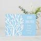 Um janto ou convite para CHURRASCOS com ilustração do tema do mar de coral branco. Este coral branco simples e bonito contra um fundo azul pastel totalmente personalizável com texto personalizável. Para amantes de frutos do mar por toda parte. Perfeito para um CHURRASCO de frutos do mar ou uma festa de janto.
