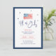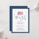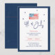 Comemore o aniversário da América com um toque sofisticado, convidando amigos e família para a festa de janto de 4 de julho usando este convite elegante e personalizável. A design apresenta uma lindíssima bandeira americana, pintada manualmente, no topo, acrescentando um talento artístico ao tema clássico. Cercado por estrelas delicadas, o roteiro "4 de julho" cria um charmoso ponto focal. A fronteira azul marinho enquadra perfeitamente o convite, dando-lhe um aspecto refinado. O que torna este convite verdadeiramente especial é a sua versatilidade e opções de personalização. Você pode personalizar todos os detalhes do evento, inclusive a data, a hora, o local e as informações de RSVP, para garantir que seus convidados tenham tudo o que precisam para participar da celebração. Este convite é perfeito para uma reunião patriótica, combinando elegância com espírito festivo, fazer seu janto de 4 de julho um evento para se lembrar.