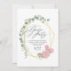 Convite de festa de jardim com folhagens de eucalipto geométricas modernas e rosas cor de blush com moldura geométrica dourada e lavagem de aquarela em menta no verso. Celebre sua ocasião especial com este convite de festa de jardim elegante com uma moldura dourada geométrica adornada com folhas de eucalipto em aquarela e rosas cor-de-rosa delicadas. Perfeito para aniversários, chá de noiva ou qualquer celebração ao ar livre. O texto personalizável permite que você personalize cada detalhe para o seu evento único.