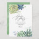 Celebre com estilo com este convite de festa de jardim elegante com um design de suculentas em tons de verde fresco. Perfeito para aniversários, chá de noiva ou reuniões casuais, este tema de verde moderno cria um visual sofisticado e convidativo. Fácil de personalizar com os detalhes da sua festa