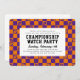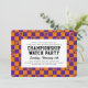 Celebre o maior jogo da temporada com este convite de tendências, futebol e tabuleiro de xadrez e reúna amigos para uma festa de observação de jogos do campeonato. Caixas de texto fáceis de editar e um código QR verificável na parte traseira envia convidados para o seu RSVP on-line ou site de organização do potluck. Este convite está pronto para ir para o grupo com cores laranja e roxa ou você pode alterá-las usando o botão editar e, em seguida, selecionar a camada de padrões > desagrupar > e selecionar cada azulejo de padrão individualmente e o plano de fundo para se adequar às cores do seu grupo preferido.