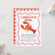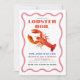 Este convite de festa de lulas/marifiscos cozidos/assados retrô apresenta uma lagosta em um fundo branco emoldurado por uma moldura ondulada rosa. O verso apresenta um fundo branco com padrões de xadrez gingham vermelhos. Personalize-o para suas necessidades. Você pode encontrar mais produtos de coelho na minha loja.