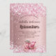Um fundo cor-de-rosa pincelado decorado com faíscas cor-de-rosa, confete e uma carruagem de safena romântica. Personalize e adicione seu nome, detalhes da festa.