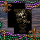 Convite Festa de Máscara de Mascarada Elegante Mardi Gras
