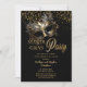 Máscara de mascarada preto e dourado e confete, design do "Partido Mardi Gras".