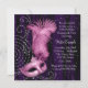 Máscara de penas rosa prateada elegante com fundo preto e branco roxo brilhante com sotaques pérolos. Este bonito convite de festas roxo, cor-de-rosa e preto, doce e dezesseis, é facilmente personalizado para o seu partido ou evento, simplesmente escolhendo o botão "Personalizar!" para começar a adicionar os detalhes do evento, estilo da fonte, tamanho da fonte e cor e texto. Por favor, observe - todos os topos de bolo, cartas e designs de convite que você encontrará no Zazzle são gráficos impressos sem joias reais, arcos, levantados, gravados ou adicionados de peças ou peças.