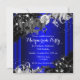 Convite de aniversário Mascarada de Prata Azul. Máscara de diamante preto e prata bonito e joias de penas. Por favor, note: todas as imagens planas! Use para qualquer idade.