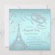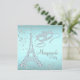 Festa de mascarada de Paris com Torre Eiffel de diamante e máscara de mascarada de diamante em um lindo fundo azul turquesa e diamante.. Este convite de festa de mascarada azul turquesa elegante é facilmente personalizado para o seu evento, basta adicionar os detalhes do evento, estilo de fonte, tamanho e cor da fonte e texto. Este é um design impresso sem diamantes reais, glitter, etc. Você pode remover o fundo azul turquesa para adicionar sua própria cor de fundo.