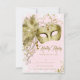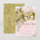 Convite Festa de Máscaras Brilho Dourado Rosa
