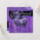 Convite para festa de máscaras de penas de pavão roxo, máscara de mardi gras roxa, festa de máscaras de penas de pavão roxo.
