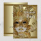 Convite de festa de máscaras preto e dourado elegante com bela máscara dourada em um fundo dourado elegante. Este convite de festa de máscaras preto e dourado é facilmente personalizado para o seu evento, basta adicionar os detalhes do evento, estilo de letra, tamanho e cor da letra e texto. Este é um design impresso sem ouro real, folha, renda, brilho, etc.