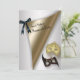Convite de festa de máscaras Sweet 16 dourado e prateado.