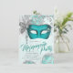 Convites de festa de máscaras azul turquesa com uma bela máscara de mascarada azul turquesa e diamante prateado com jóias em um elegante fundo azul turquesa e prateado. Este convite de festa de máscaras é facilmente personalizado para o seu evento, basta adicionar os seus detalhes no estilo de letra, layout e redação de sua escolha.