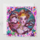 Pintura caprichosa vibrante e artística com confetes coloridos. Amor mítico entre o Arlequim e Colombina, pintura em acrílico inspirada em máscaras de penas venezianas e Commedia dell'arte - Veneza. Cores verde, amarelo, rosa e roxo brilhante.