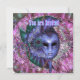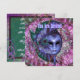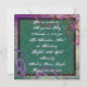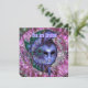 Convite de festa de máscaras com contas e confetes verde roxo.