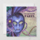 Convite de festa de máscaras com máscara roxa e contas de Mardi Gras nas cores azul real, rosa e verde. Peças coordenadas disponíveis mediante solicitação por e-mail.