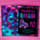 Convite Festa de Meninas de Patinação no Gelo Neon Anivers