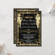 Personalize facilmente e rapidamente este convite de festa de mistério de assassinato art déco vintage, basta pressionar o botão personalizar para reorganizar e formatar ainda mais o estilo e a colocação do texto. Apresenta uma moldura art déco chique e esquema de cores preto, branco e dourado. Itens correspondentes disponíveis na loja! (c) The Happy Cat Studio.