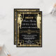 Personalize facilmente e rapidamente este convite de festa de mistério de assassinato art déco vintage, basta pressionar o botão Editar Usando Ferramenta de Design para reorganizar e formatar o estilo e a colocação do texto. Apresenta uma moldura art déco chique e esquema de cores preto, branco e dourado. Itens correspondentes disponíveis na loja! (c) The Happy Cat Studio.