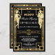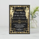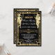 Personalize facilmente e rapidamente este convite de festa de mistério de assassinato art déco vintage, basta pressionar o botão personalizar para reorganizar e formatar o estilo e a colocação do texto. Apresenta uma moldura art déco elegante e esquema de cores preto, branco e dourado. Itens correspondentes disponíveis na loja! (c) The Happy Cat Studio.