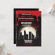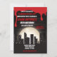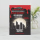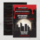 O convite incrível é para uma festa de mistério de assassinato. Tem o design de uma silhueta da paisagem urbana e sangue pingando no cartão. Ao fundo, está a lua cheia e nuvens vermelhas e brancas. Isso pode ser usado para qualquer tipo de festa de mistério de assassinato.